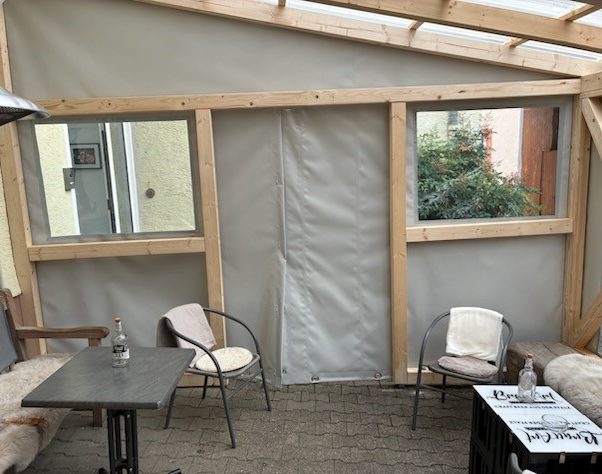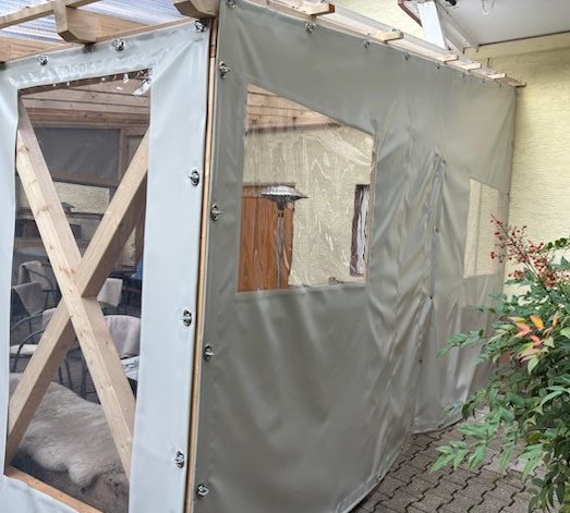 Seitenplanen für Brau Art- Sausenheim, kundenindividuell mit Fenstern und Schlupftür